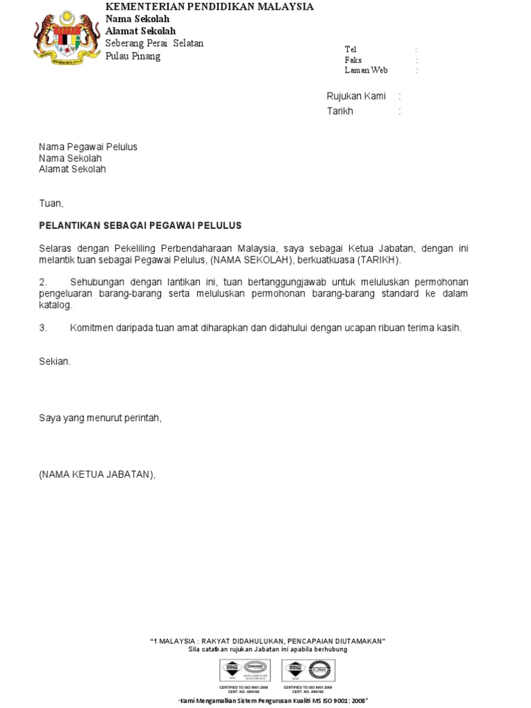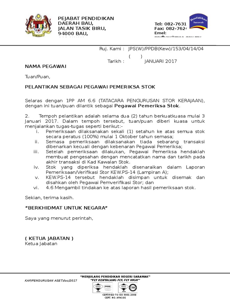 Contoh Surat Lantikan Pegawai Pengurusan Aset Dan Stor Oleh Ketua Jabatan Pdf